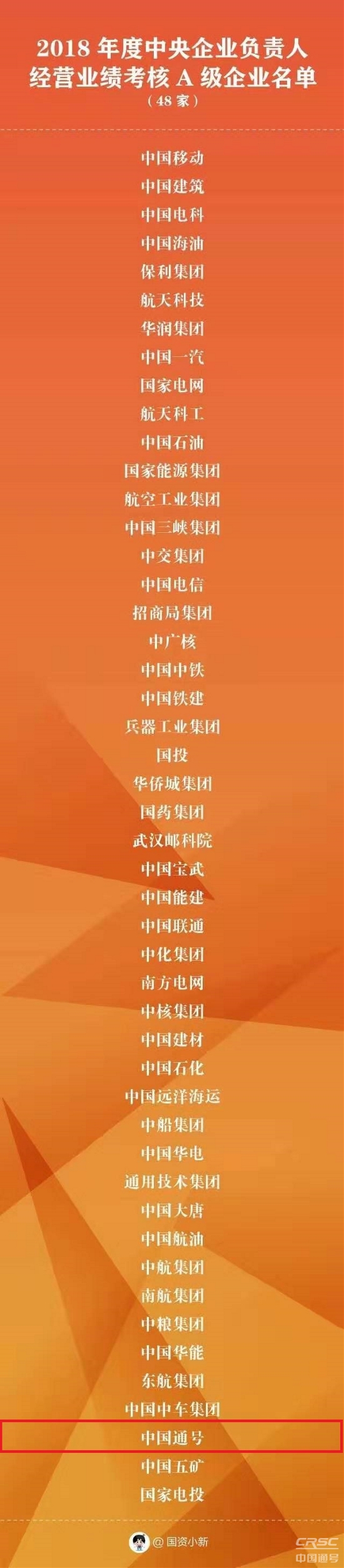 2018年度經(jīng)營(yíng)業(yè)績(jī)考核A級(jí)企業(yè)名單