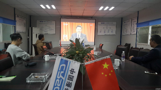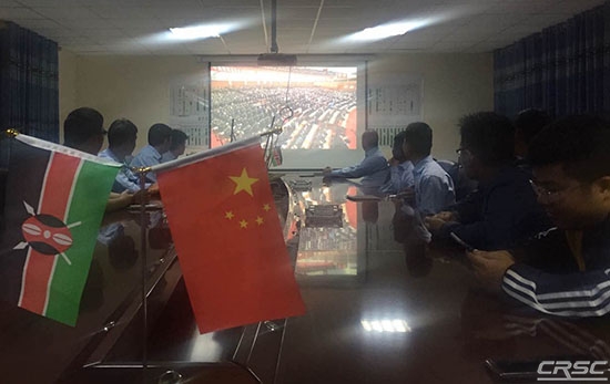 肯尼亞蒙內(nèi)鐵路項目部當?shù)貢r間凌晨4點觀看黨的十九大開幕會直播
