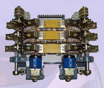 電空接觸器適用于電傳動(dòng)的機(jī)車中,在牽引工況時(shí)用來(lái)通斷牽引發(fā)電機(jī)及牽引電動(dòng)機(jī)的主回路;在電阻制動(dòng)工況時(shí),用來(lái)通斷牽引電動(dòng)機(jī)(發(fā)電機(jī)運(yùn)行)與制動(dòng)電阻電路。