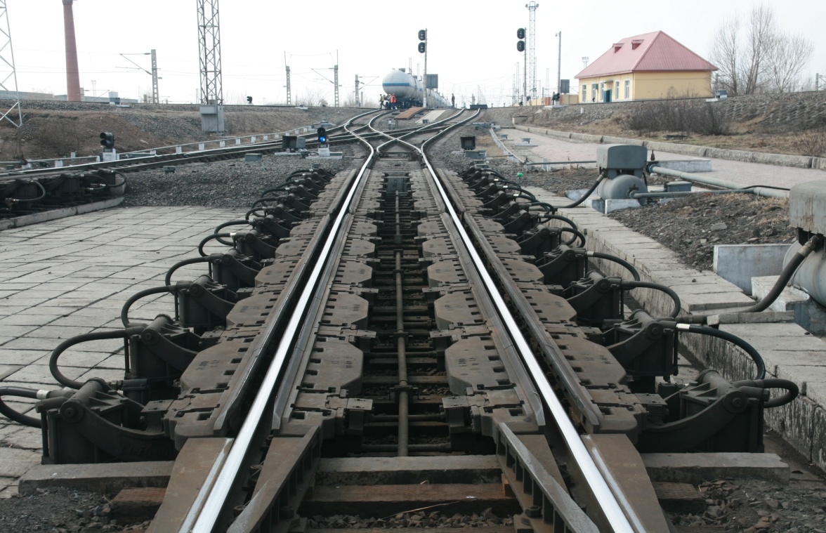 T.JK型車輛減速器是非重力式減速器,以壓縮空氣為動力,借助“控制裝置”的控制,根據(jù)溜放車輛的不同重量,不同速度,采用不同的制動等級(四級或六級)進(jìn)行制動,使通過減速器的溜放車輛達(dá)到設(shè)定的出口速度。