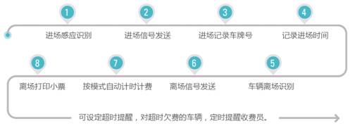 拍攝車牌及識(shí)別確認(rèn)停車時(shí)間接收收費(fèi)金額打印停車憑證自動(dòng)扣款 |