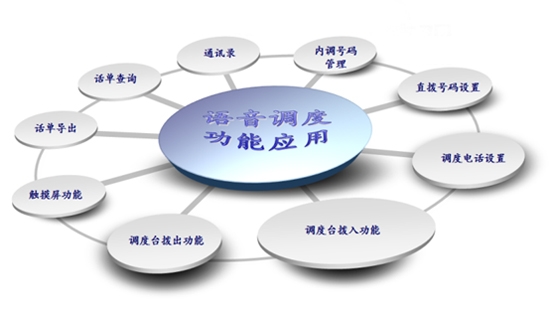 主要功能包括調(diào)度功能和管理功能這兩大功能塊,其中調(diào)度功能包含:調(diào)度臺撥入、撥出功能,其他功能則屬于管理功能。