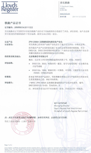 勞氏鐵路提供的安全評(píng)估報(bào)告和認(rèn)證證書(shū):