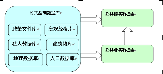 公共基礎(chǔ)數(shù)據(jù)庫由人口數(shù)據(jù)庫、法人數(shù)據(jù)庫、宏觀經(jīng)濟數(shù)據(jù)庫、地理空間數(shù)據(jù)庫、政策文件庫及建筑物數(shù)據(jù)庫等六大類數(shù)據(jù)庫組成。公共基礎(chǔ)數(shù)據(jù)是基礎(chǔ)且變化頻率相對較低的信息資源,是城市公共數(shù)據(jù)的“綱”。公共基礎(chǔ)數(shù)據(jù)可由法定管理單位提供。