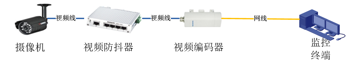如上圖所示,視頻防抖器是串聯(lián)在攝像機(jī)和編碼器之間,對(duì)圖像進(jìn)行穩(wěn)像處理。