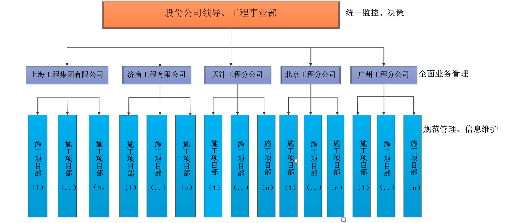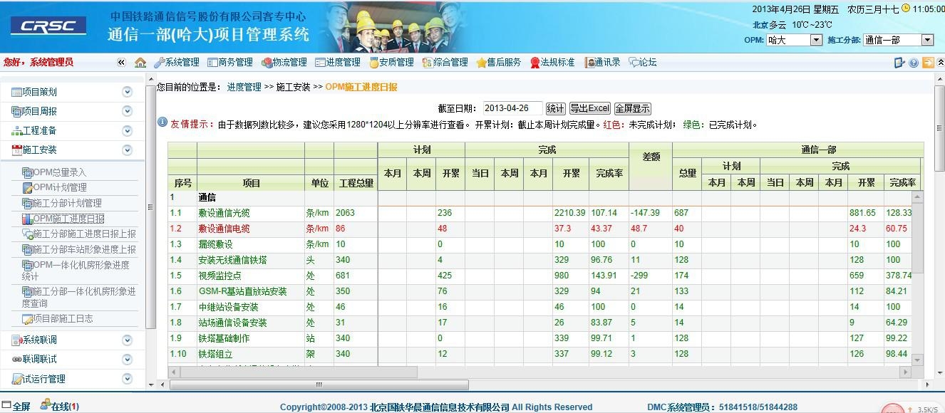 系統(tǒng)應(yīng)用于中國鐵路通信信號股份有限公司,實(shí)現(xiàn)了公司工程管理部、二級施工企業(yè)(工程公司)、施工項(xiàng)目部三級管理。工程管理部可實(shí)時(shí)掌握各施工企業(yè)項(xiàng)目建設(shè)情況;各施工企業(yè)能夠?qū)?xiàng)目進(jìn)行全面管理和業(yè)務(wù)調(diào)度、審批,提高項(xiàng)目管理的工作效率,強(qiáng)化現(xiàn)場管理,提高項(xiàng)目安全質(zhì)量管理,滿足項(xiàng)目成本、進(jìn)度的要求。
