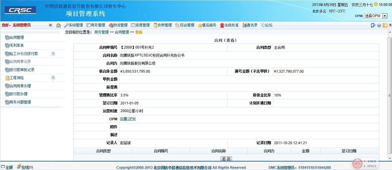 國鐵華晨工程項(xiàng)目管理系統(tǒng)(Power-PM),該系統(tǒng)基于PMBOK知識體系的多項(xiàng)目管理系統(tǒng),以協(xié)同機(jī)制為設(shè)計(jì)思路,通過明確項(xiàng)目計(jì)劃,控制項(xiàng)目預(yù)算,監(jiān)控項(xiàng)目進(jìn)程對工程建設(shè)進(jìn)度、物資、安質(zhì)、合同等項(xiàng)目進(jìn)行全面管理,保證項(xiàng)目完成的時(shí)間、預(yù)算和質(zhì)量。